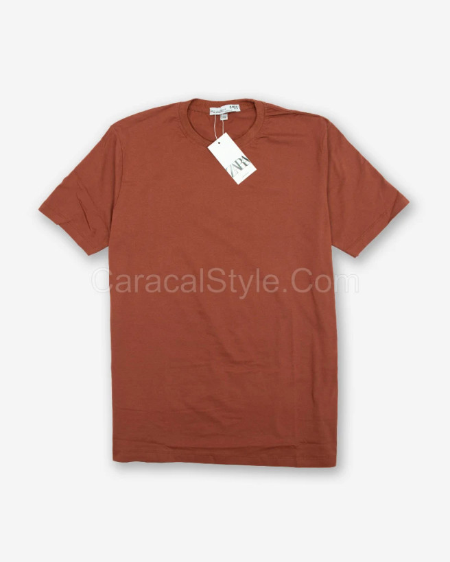 تیشرت آستین کوتاه مردانه ساده زارا آجری TK135