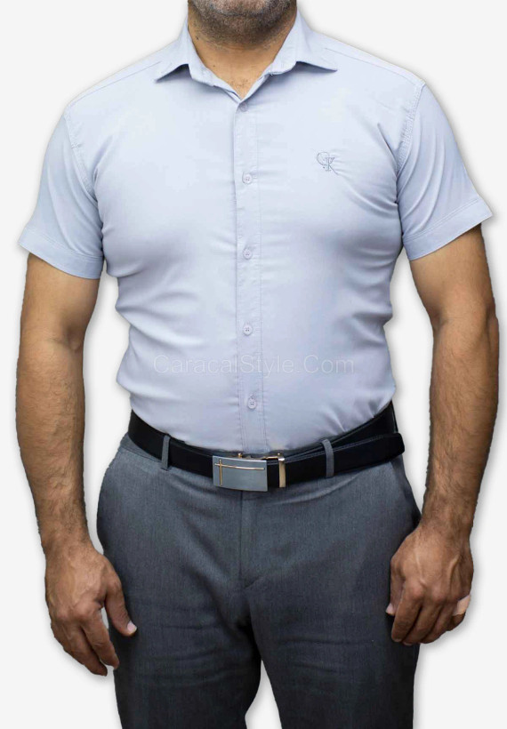 پیراهن آستین کوتاه مردانه ساده تک رنگ، با برش معمولی، بدون جیب، شیک و اسپرت، جنس پارچه بنگال