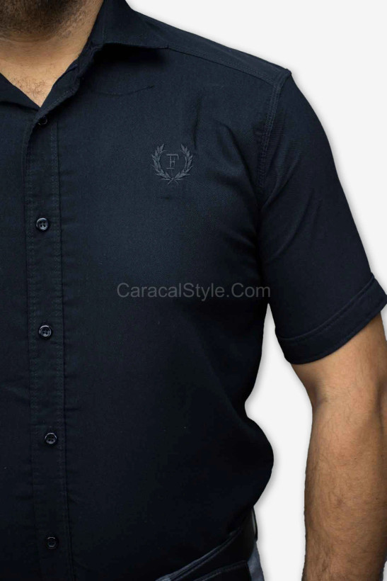 پیراهن آستین کوتاه مردانه ساده تک رنگ، با برش معمولی، بدون جیب، شیک و اسپرت، جنس پارچه کجرا نخی