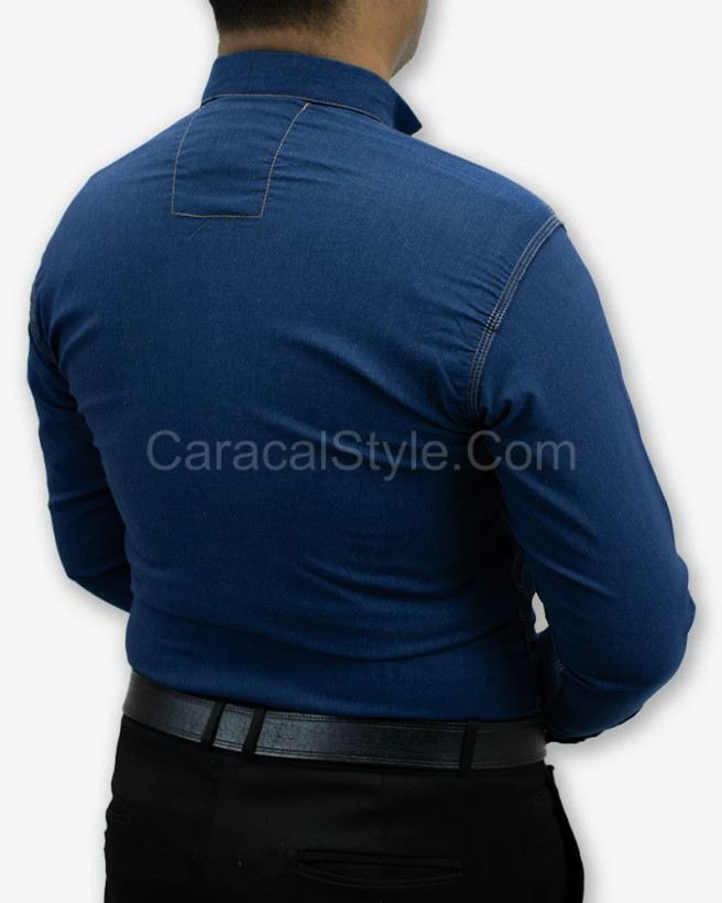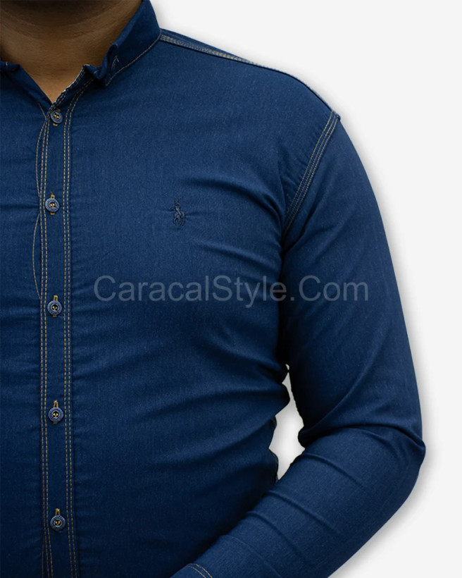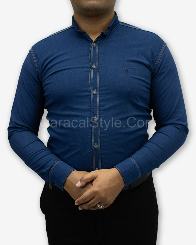 پیراهن آستین بلند مردانه طرح لی آبی سرمه ای PB111