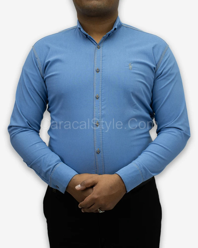 پیراهن آستین بلند مردانه طرح لی، با برش معمولی، بدون جیب، با دوخت سه خط جین، شیک و اسپرت، جنس پارچه بنگال گرم بالا، با کش سانی مناسب که تداعی کننده پارچه جین می باشد ولی به مراتب خنک تر است.