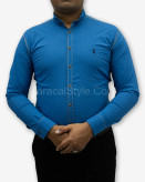 پیراهن آستین بلند مردانه طرح لی آبی کاربنی PB114