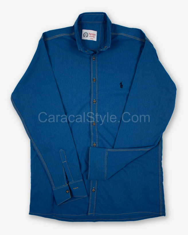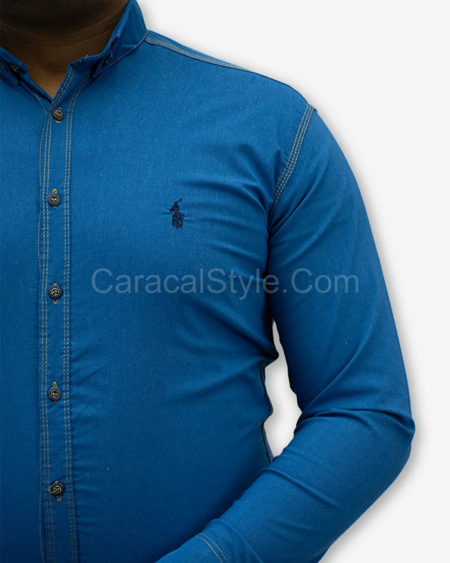 پیراهن آستین بلند مردانه طرح لی آبی کاربنی PB114
