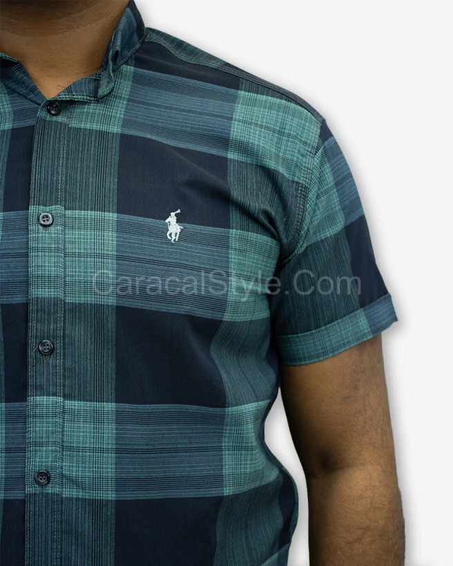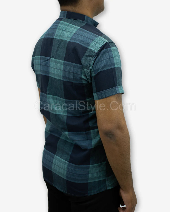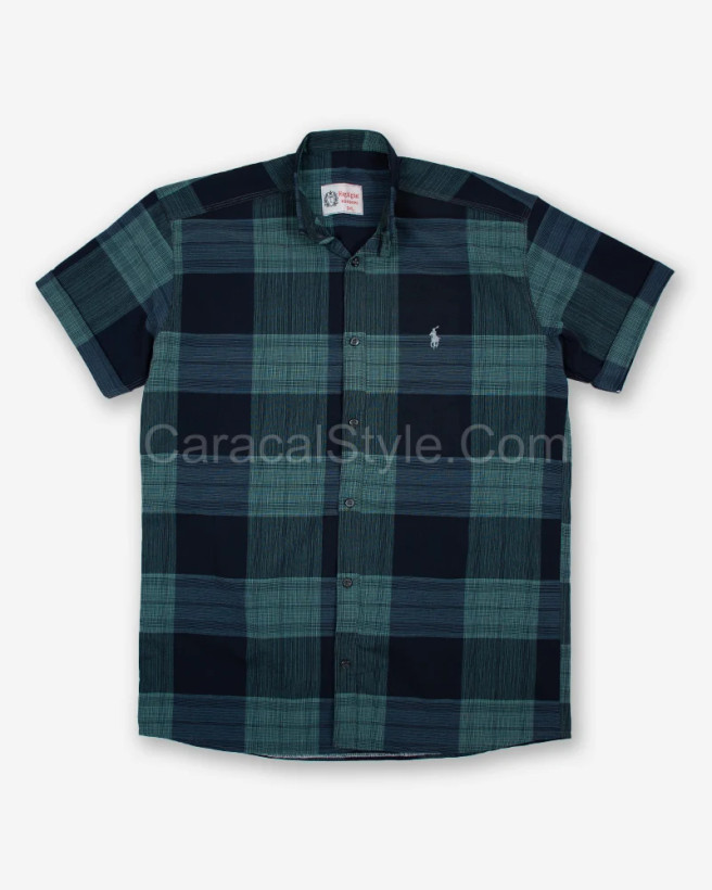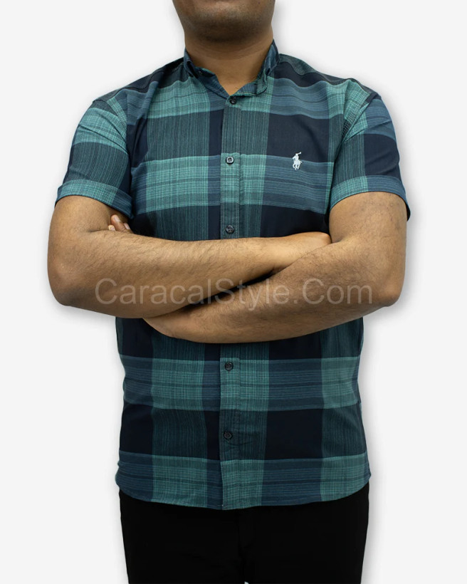پیراهن آستین کوتاه مردانه چهارخانه، با برش معمولی، بدون جیب، شیک و اسپرت، جنس پارچه نخی، با کش سانی مناسب