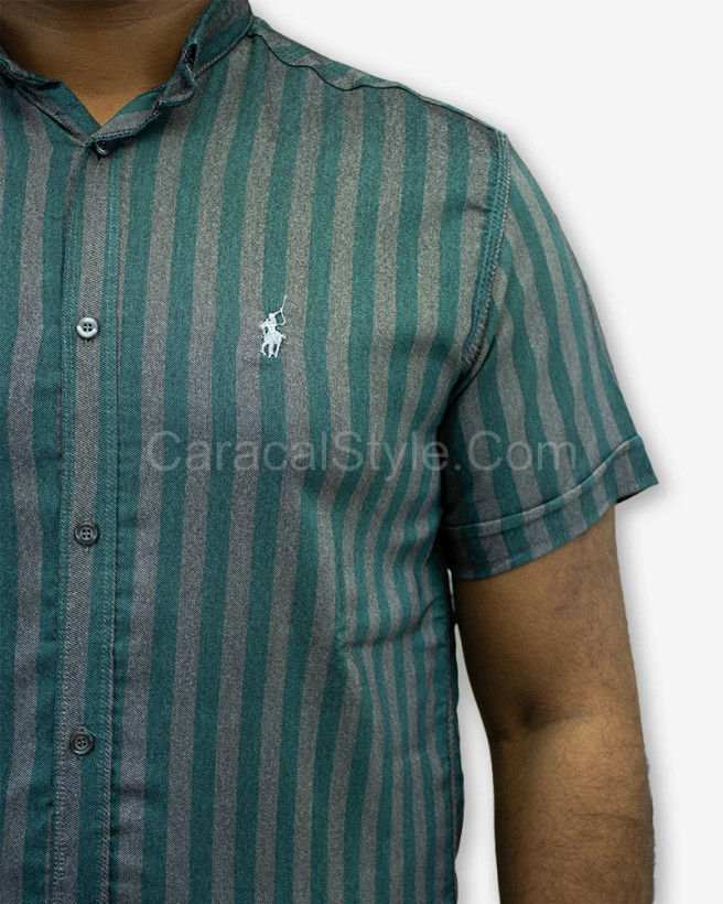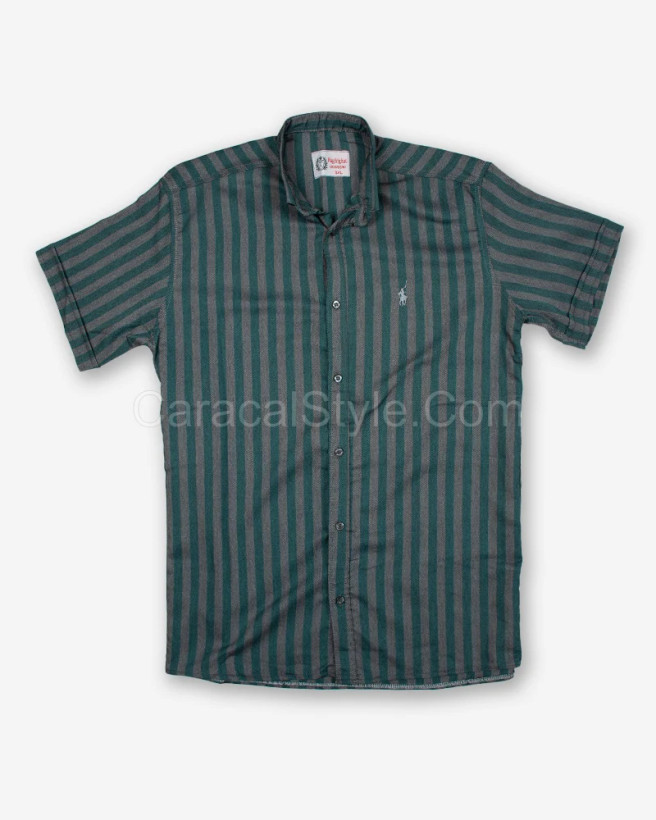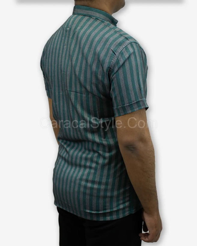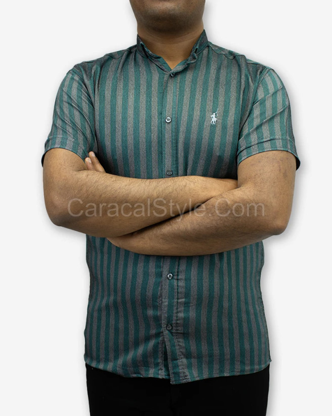 پیراهن آستین کوتاه مردانه راه راه، با برش معمولی، بدون جیب، شیک و اسپرت، جنس پارچه نخی ساتن گونه