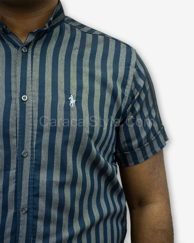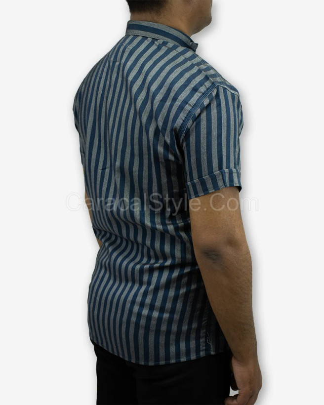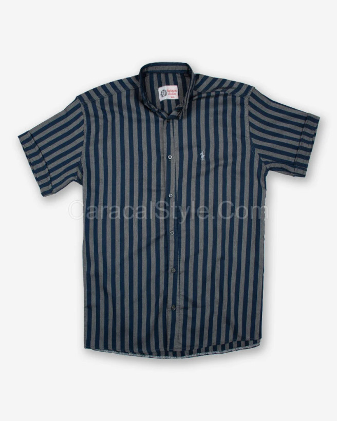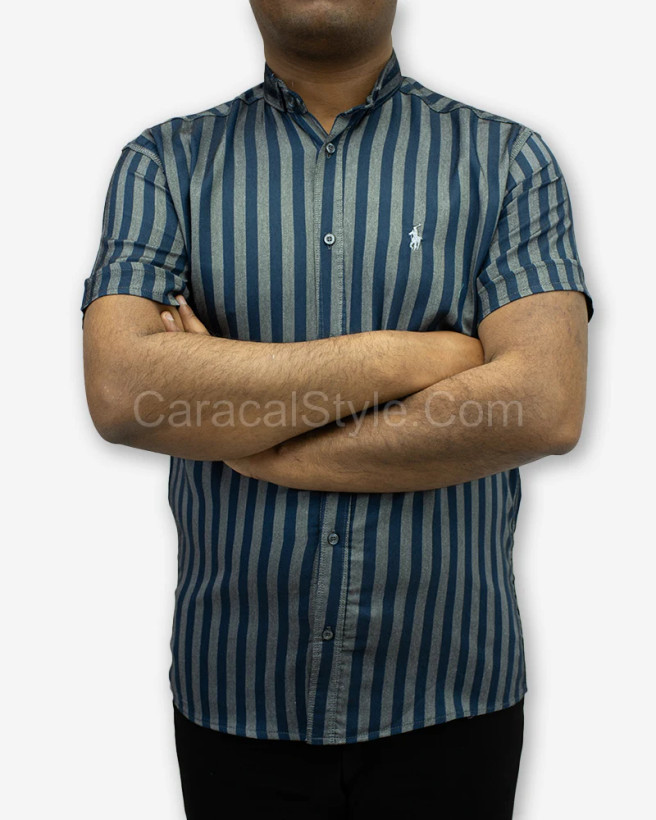 پیراهن آستین کوتاه مردانه راه راه، با برش معمولی، بدون جیب، شیک و اسپرت، جنس پارچه نخی ساتن گونه